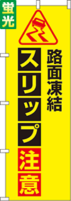 路面凍結スリップ注意【蛍光のぼり旗】0720022IN