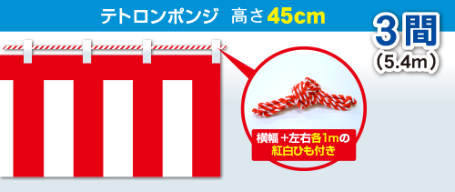 紅白幕サイズ:高さ45cm×長さ5.4m 紅白ひも付