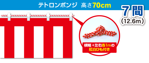 紅白幕サイズ:高さ70cm×長さ12.6m 紅白ひも付
