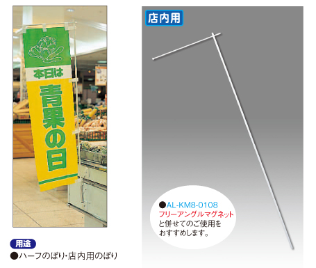 ハーフのぼり・店内用のぼりに使用できます。フリーアングルマグネットとの併用がおすすめです!
